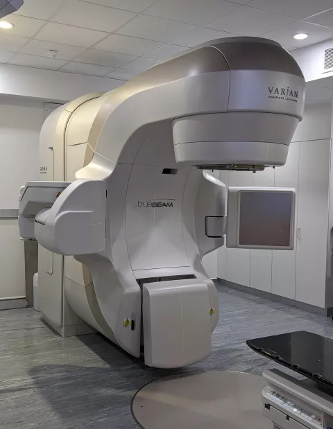 The radiotherapy machine is called a linear accelerator, often referred to as a linac. You will hear the machine move around you. It will come close to you but will not touch you. You will hear radiographers taking various measurements and feel the bed moving.