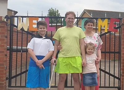 After 52 days in hospital and having to learn to swallow, stand and walk again, Chris was able to go home on 27 May and is continuing to recover with his wife, Joanna, and children, David and Sophie, by his side.