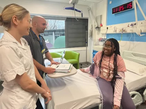 13-year-old Elisha joined the study, taking place in 1 of 2 dedicated children's clinical research facilities in Evelina London, in October 2023. It is an 'open label' study, which means that all the children taking part receive the treatment. She received her first infusion of Inebilizumab in the autumn and returns to Wolf clinical research facility for regular follow up visits where she is supported by a specialist children's research team.