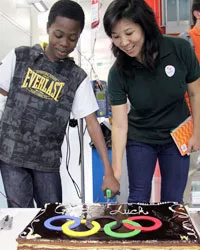The group also visited patients at the Evelina Children’s Hospital and enjoyed a fantastic Olympic-themed cake.