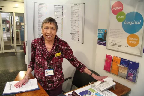 “In the early days I was a volunteer on the wards helping nurses to make the beds, then I moved to the Chaplaincy. If someone had bad news they knew I was really listening to them because I know how it feels. Now I’m on the information stand helping patients get to their appointments.