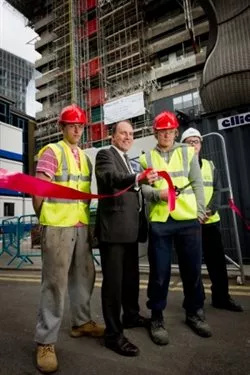 MP Simon Hughes officially launched the Guy’s Tower re-cladding scheme yesterday. Rising to 34 storeys and, at 143 metres, Guy’s Hospital tower is the tallest hospital building in the world. The Tower Wing opened in 1974 and has been a landmark on the South Bank skyline ever since serving the population of south east London well in its 38 years of existence, but the exterior is now in need of an extensive overhaul.