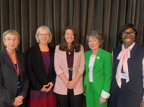 From left to right: Professor Deirdre Kelly, Professor Meriel Jenney, Kate Denham, Professor Dame Lesley Regan, Gubby Ayida