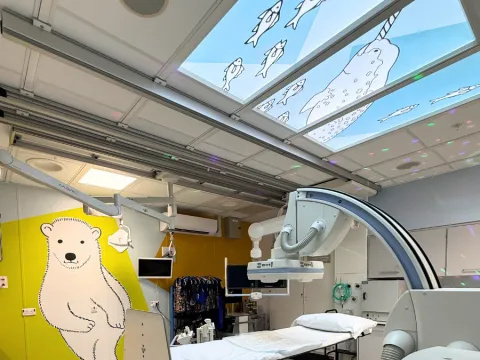 The new room features a bright and friendly Arctic theme, including a narwhal skylight and artwork of a polar bear and explorer, to help create a calm and welcoming environment. A new surgical light has also been installed to support safe and effective care.