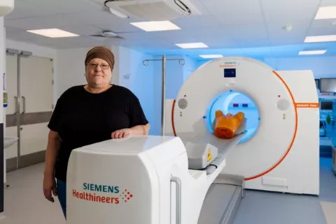 Sarah Corfield was the first person to use the new scanner at St Thomas’ Hospital. Sarah, 48, has stage four melanoma and has been a patient at Guy’s and St Thomas’ since 2018. She has received regular PET scans as part of the diagnoses and treatment for her cancer.